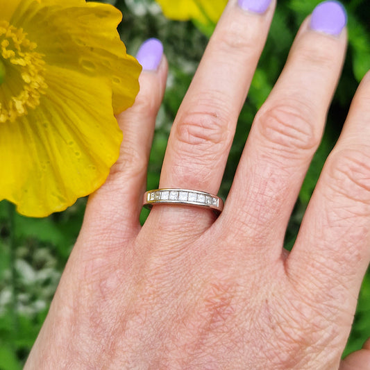 c1980's Vintage Princess Cut Diamond Half Eternity Ring