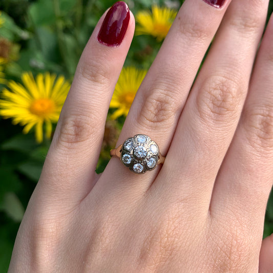 c1980's Vintage 0.80ct Diamond Floral Cluster Ring