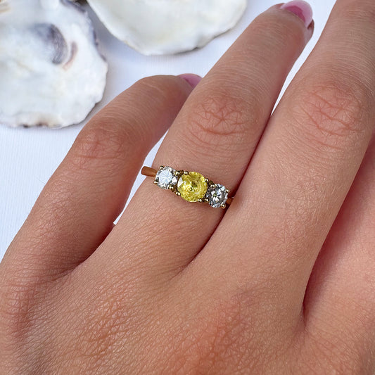 Vintage 0.50ct Yellow Sapphire & 0.40ct Diamond Trilogy Ring
