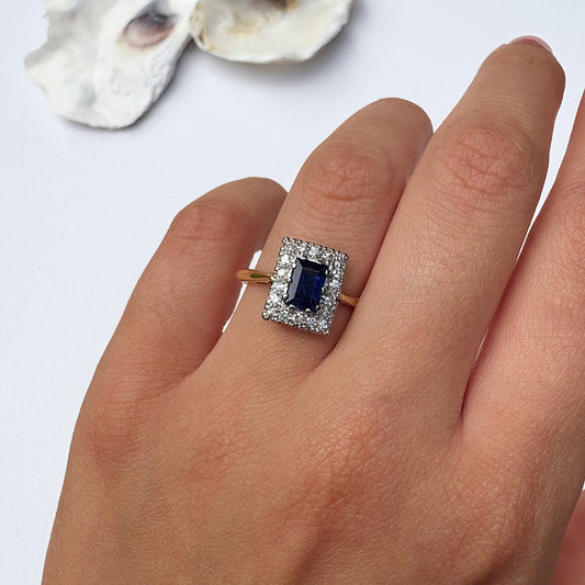 Vintage 0.75ct Sapphire & 0.25ct Diamond Cluster Ring