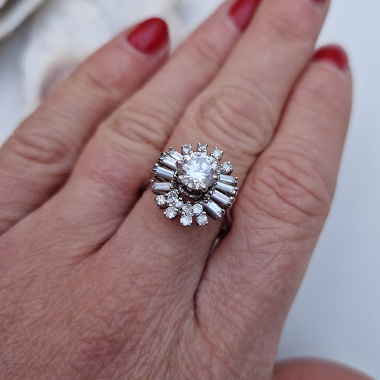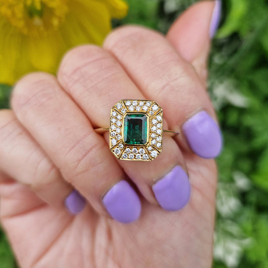 1987 Vintage 1ct Emerald & Diamond Cluster Ring