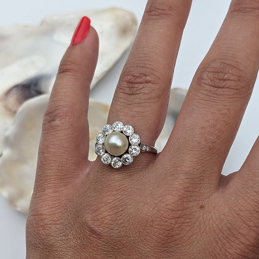 Antique Pearl & Old European Cut 1.5ct Diamond Cluster