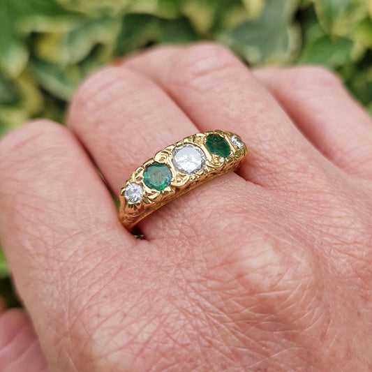 1978 Vintage Emerald & Diamond Five Stone Ring