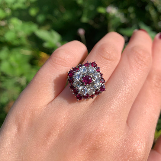 Vintage 3ct Ruby & 1.6ct Diamond Cluster Ring