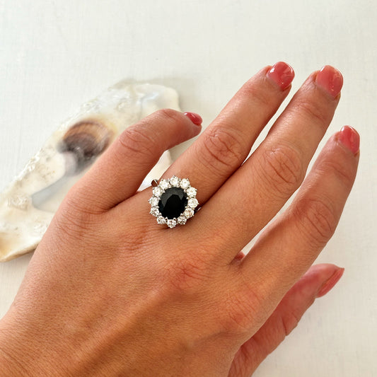 1975 Vintage 4.75ct Sapphire & 1.80ct Diamond Cluster Ring