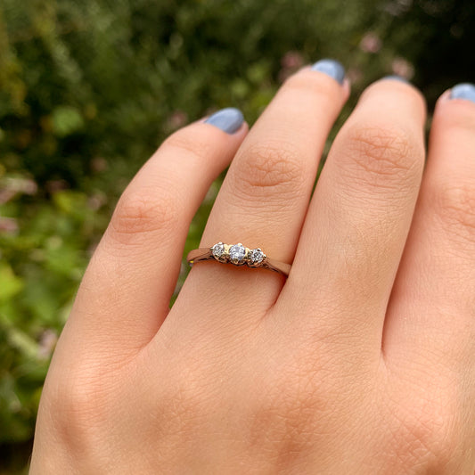 c1980's Vintage 0.10ct Diamond Trilogy Ring