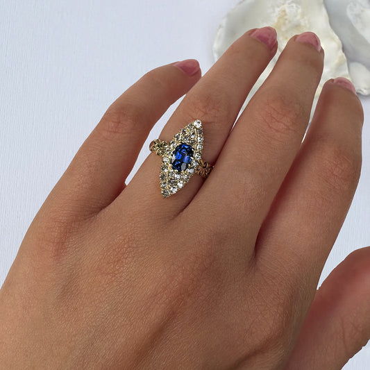 Vintage 1ct Sapphire & 0.75ct Diamond Marquise Cluster Ring