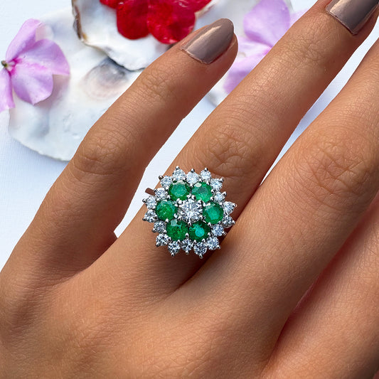 Vintage 1.50ct Emerald & 0.50ct Diamond Cluster Ring