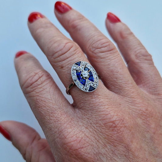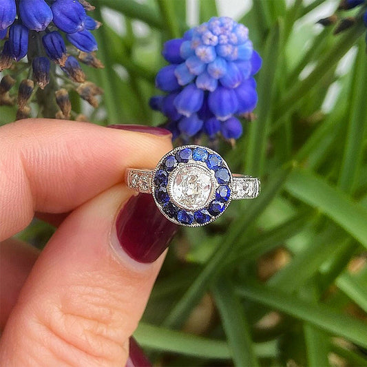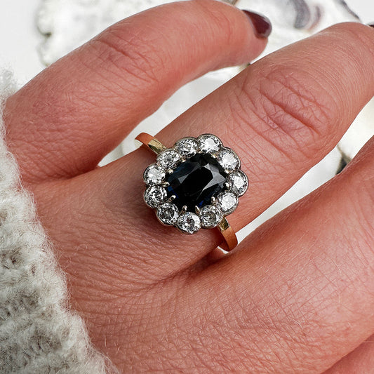 Vintage Art Deco Sapphire & Diamond Cluster Ring