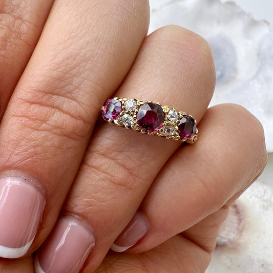 1916 Antique Ruby & Diamond Seven Stone Ring