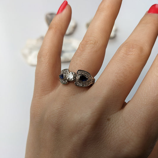 Vintage 1ct Sapphire & Diamond Trilogy Ring
