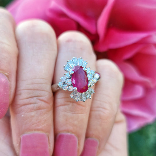 Vintage 1.15ct Ruby & Mixed Cut Diamond Cluster
