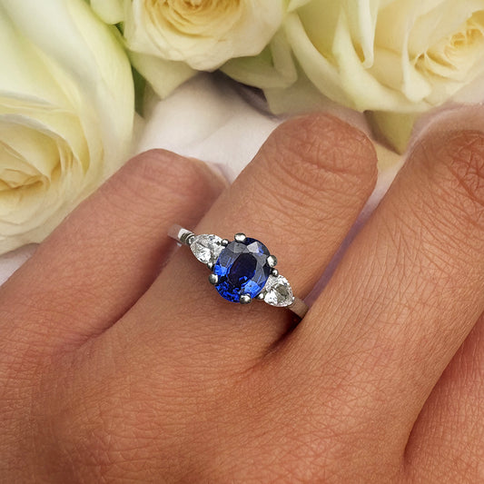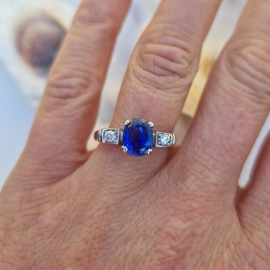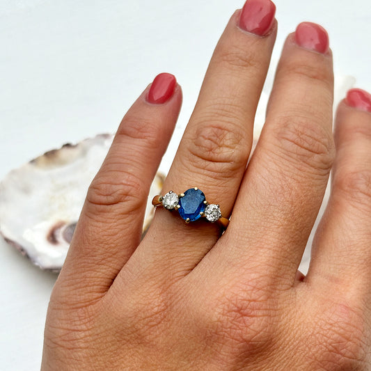 Vintage 1.5ct Sapphire & 0.50ct Diamond Trilogy Ring