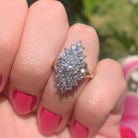 Vintage 1.65ct Diamond Marquise Cluster Ring