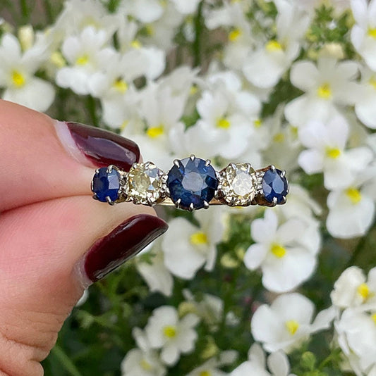 Early 20th Century Antique Sapphire & Diamond Five Stone Ring
