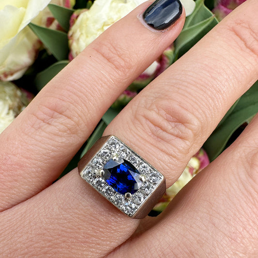Vintage Art Deco Sapphire & Diamond Cluster Ring