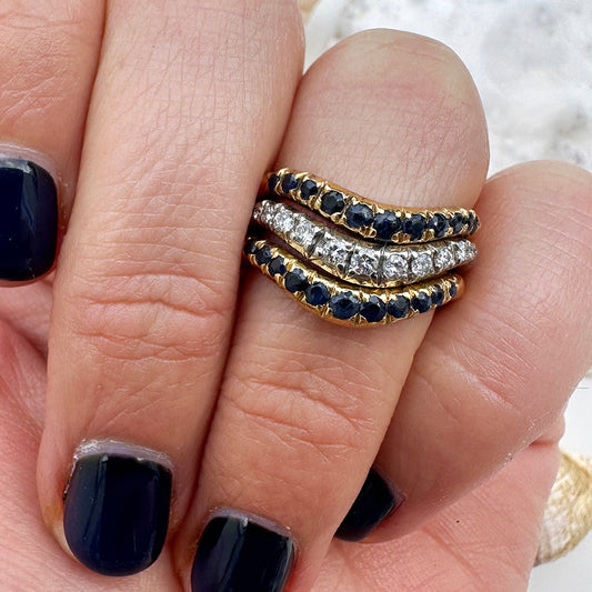 Vintage Sapphire & Diamond Wishbone Rings - SET OF 3