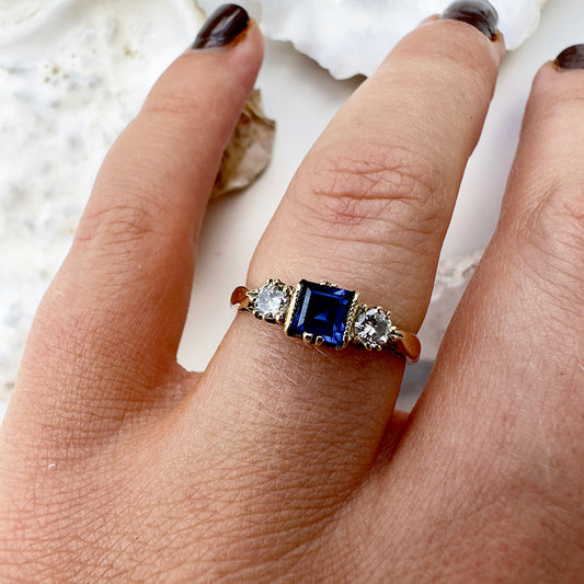 1963 Vintage Sapphire & Diamond Trilogy Ring