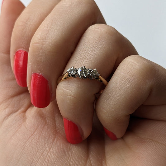 c1940’s Vintage Diamond Trilogy Engagement Ring