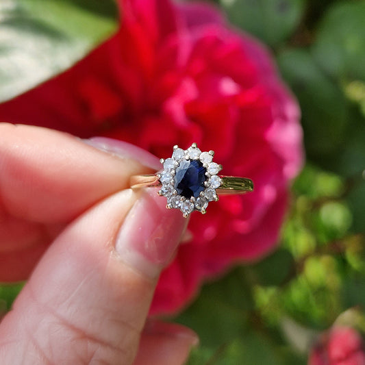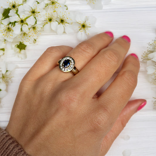 1984 Vintage Sapphire & Diamond Cluster Ring