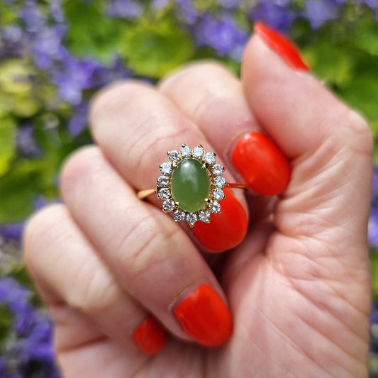 c1980's Vintage Chrysoberyl & Diamond Cluster Ring