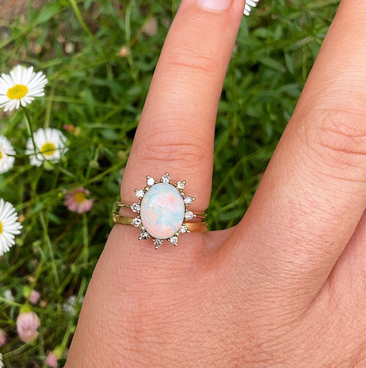 1987 Vintage Opal & Diamond Oval Cluster Ring