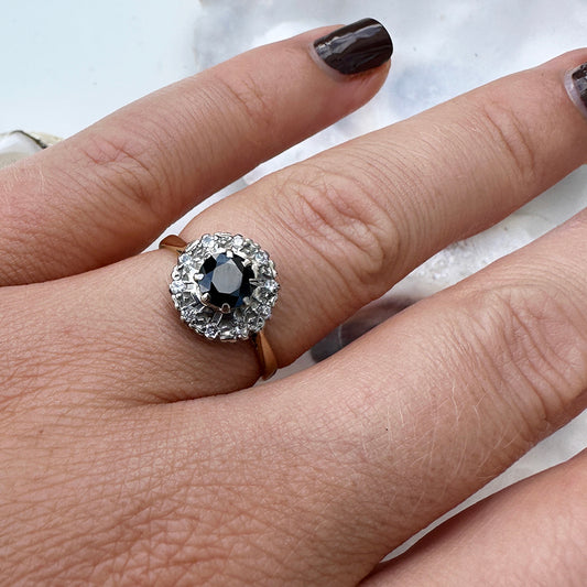 1958 Vintage Sapphire & Diamond Cluster Ring