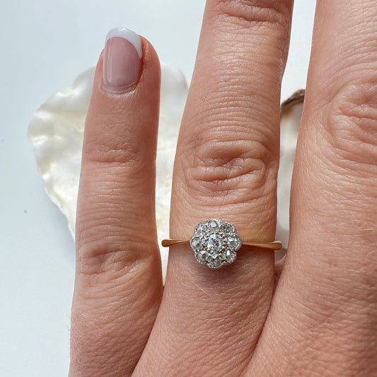 Antique Old European Cut Diamond Daisy Cluster Ring