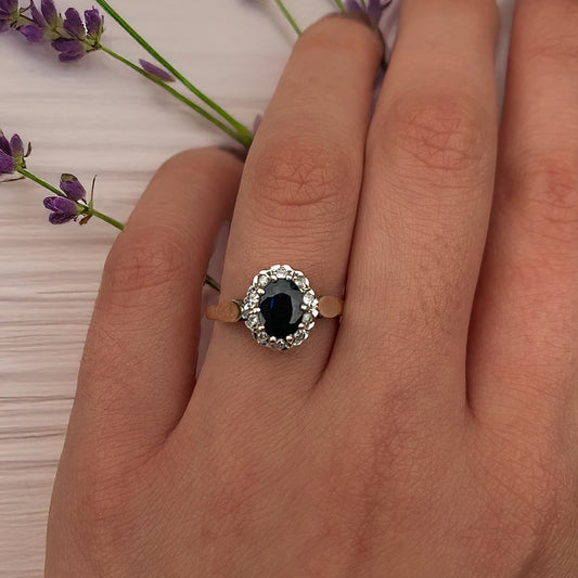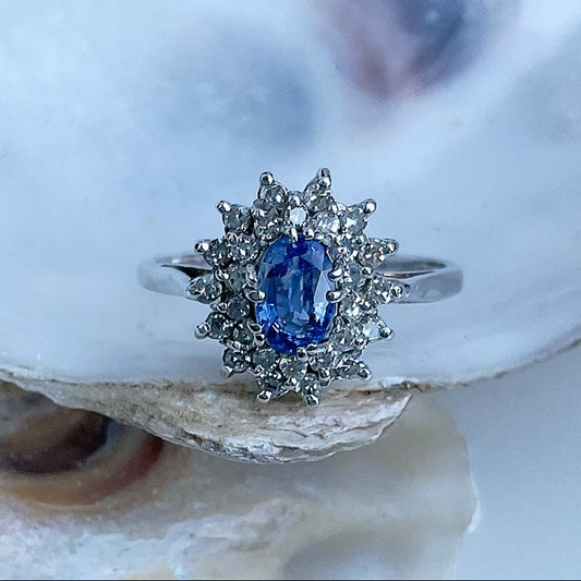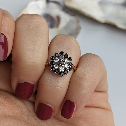 Vintage 1989 Sapphire & Diamond Cluster Ring