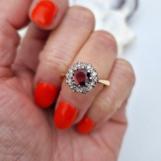 c1970's Vintage Garnet & Diamond Cluster
