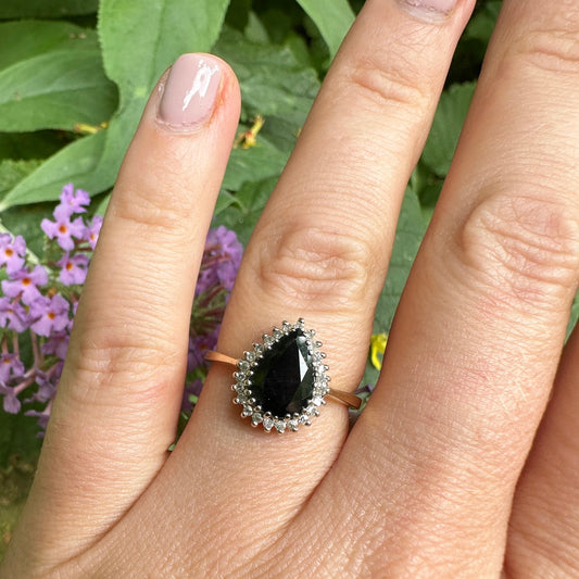 1989 Vintage Pear Cut Sapphire & Diamond Cluster Ring
