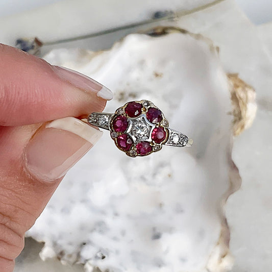 c1950’s Art Deco Ruby & Diamond Cluster Ring