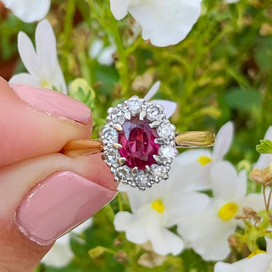 c1970’s Vintage Ruby & Diamond Oval Cluster Ring