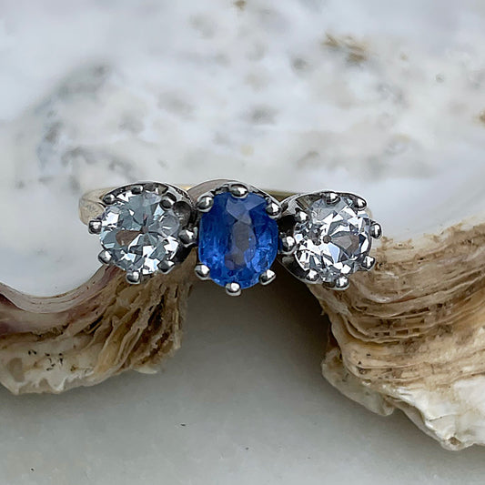 c1990’s Vintage Blue & Clear Sapphire Trilogy Ring