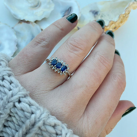 Vintage Sapphire & Diamond Trilogy Cluster Ring