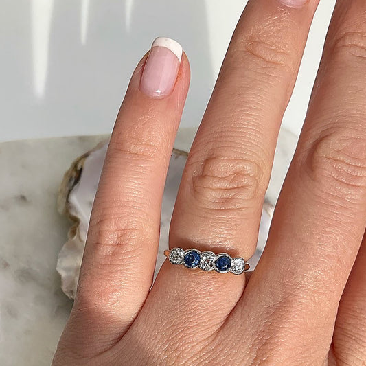 c1990’s Vintage Sapphire & Diamond Five Stone Eternity Ring