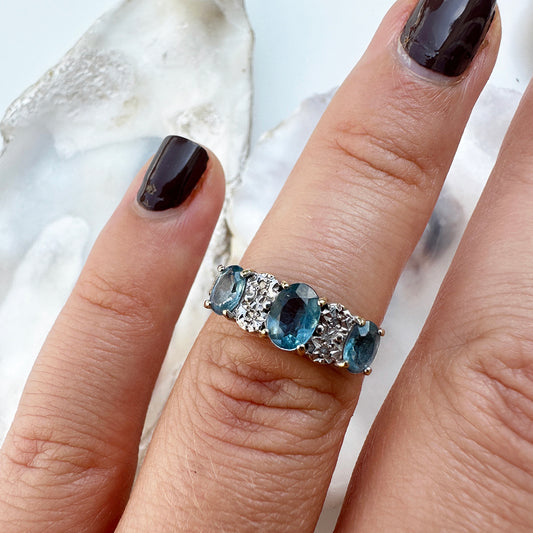 1982 Vintage Sapphire & Diamond Floral Trilogy Ring