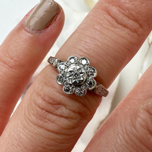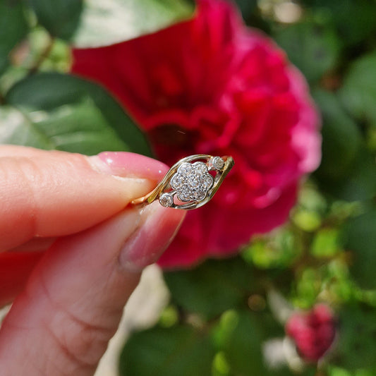 Vintage Green Tourmaline & Diamond Floral Cluster Ring