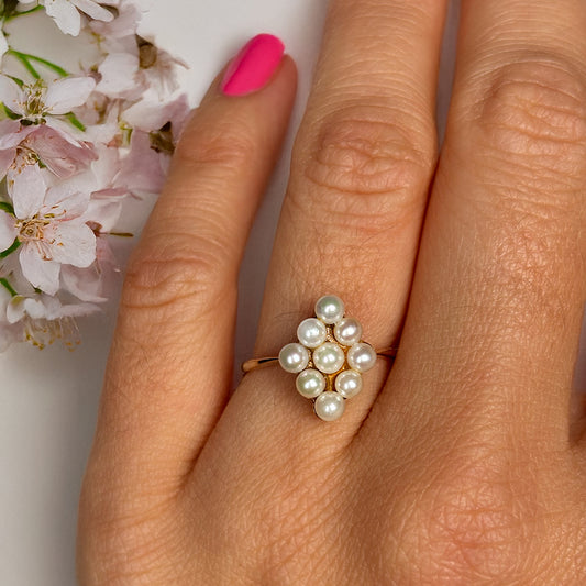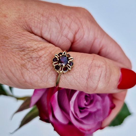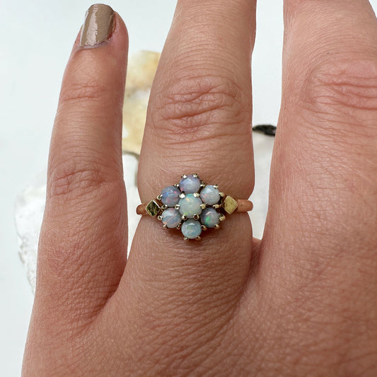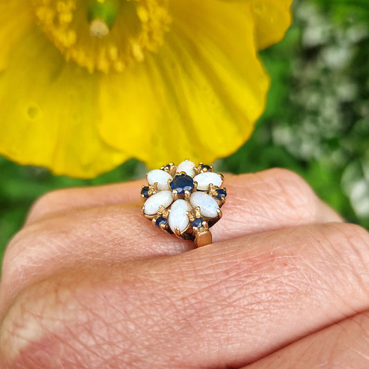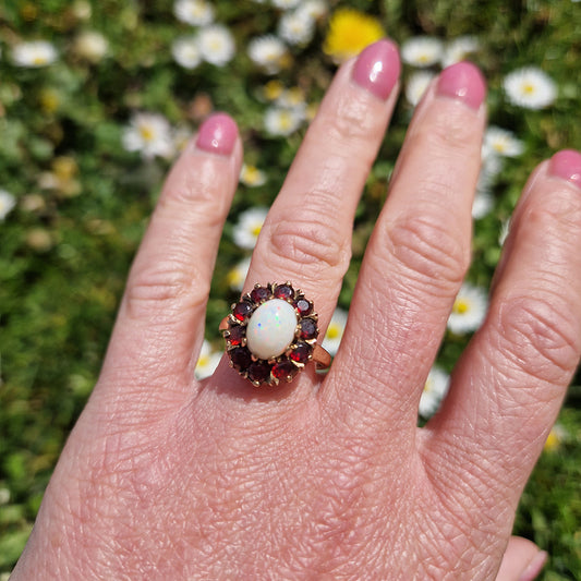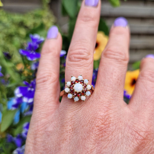 1975 Vintage Opal & Garnet Floral Cluster Ring