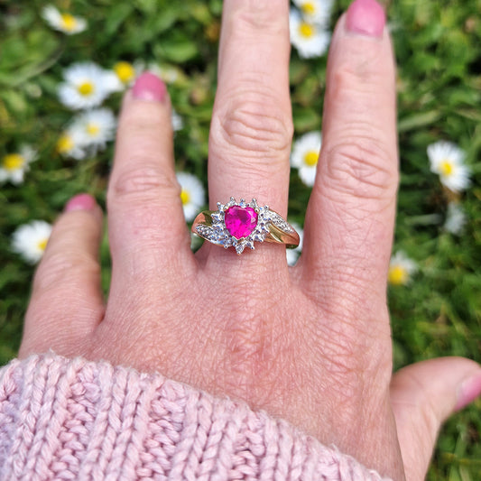 Vintage Heart Cut Pink Tourmaline & Diamond Cluster