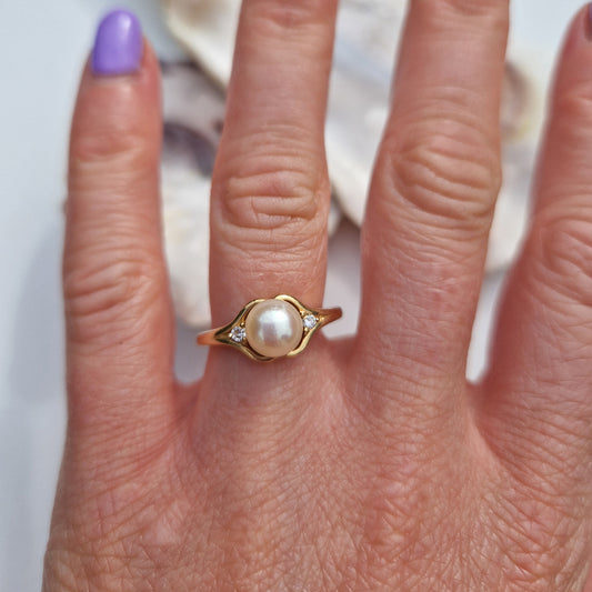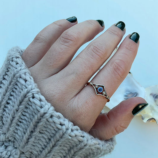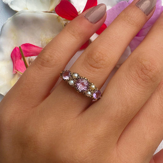 Vintage Sapphire & Split Pearl Three Stone Ring