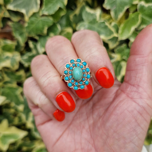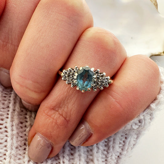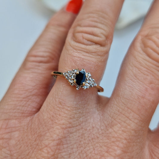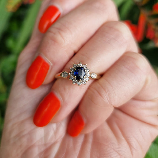 c1980's Vintage Oval Sapphire & Diamond Cluster Ring