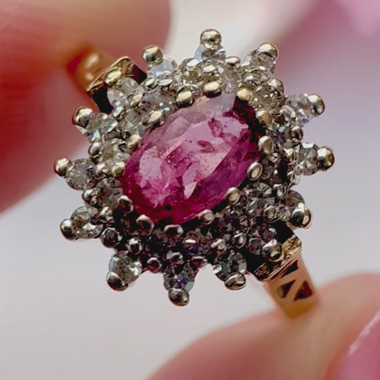 1988 Vintage Ruby & Diamond Cluster Ring
