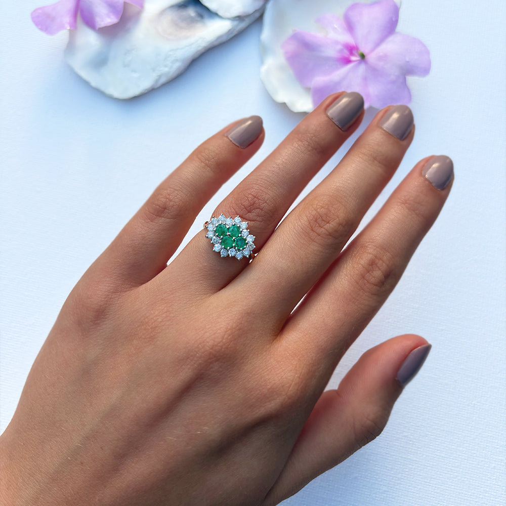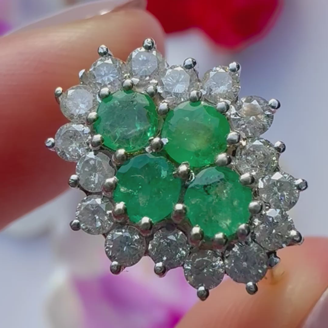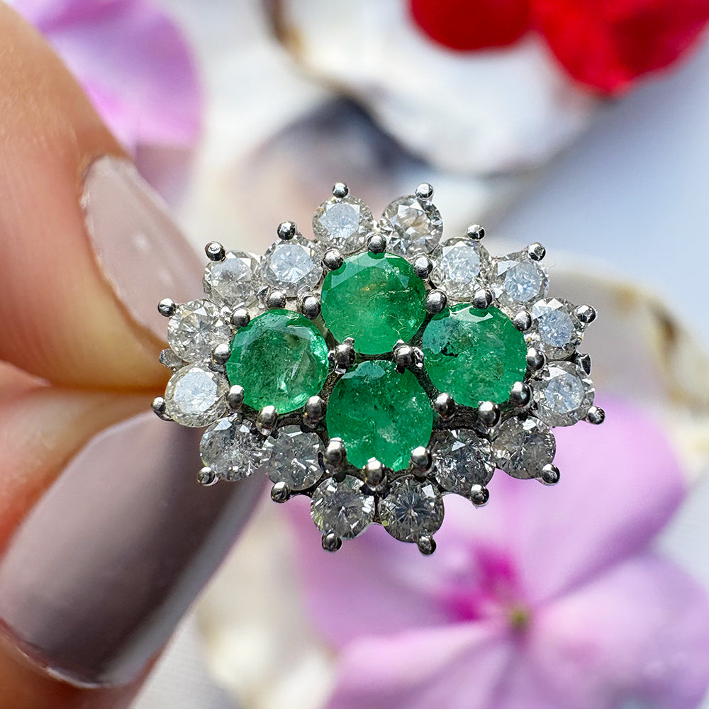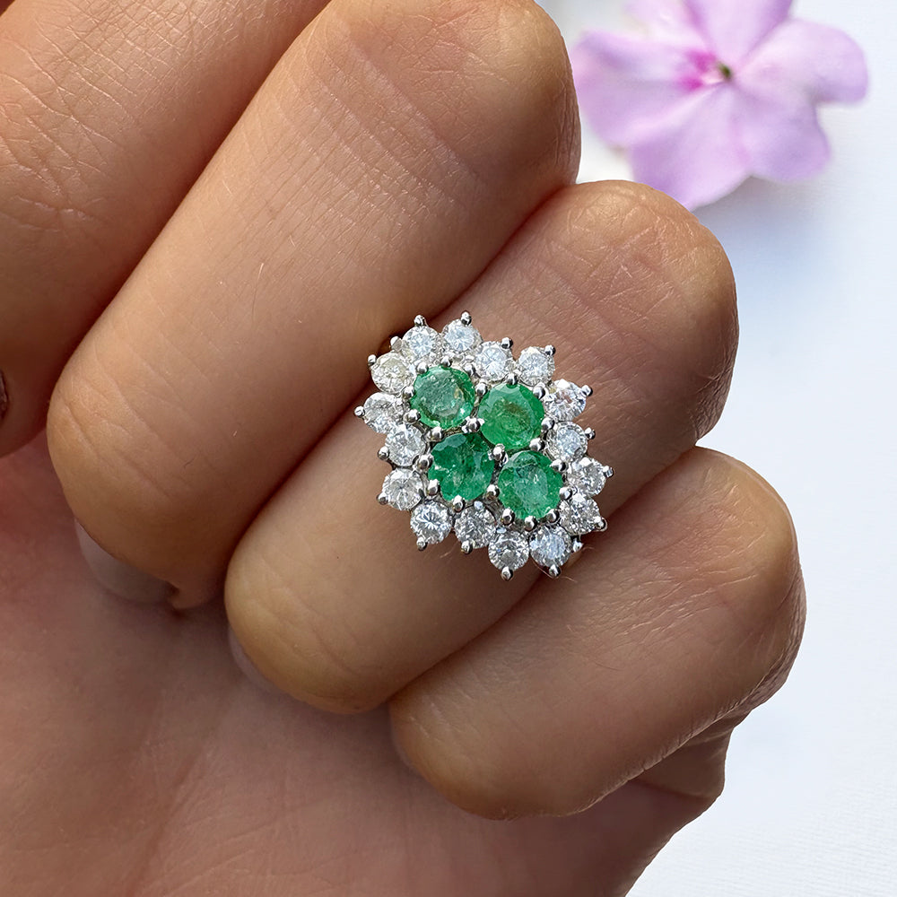 Vintage 1ct Emerald & 0.50ct Diamond Cluster Ring