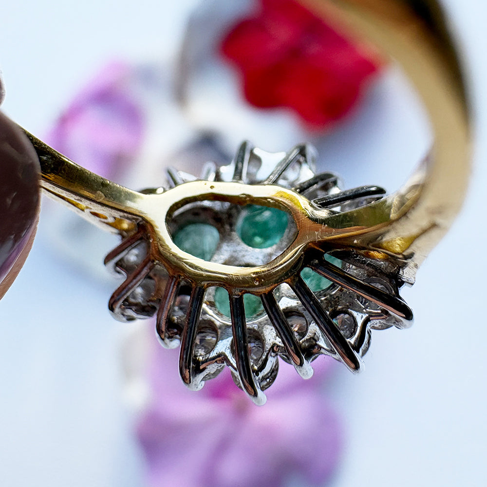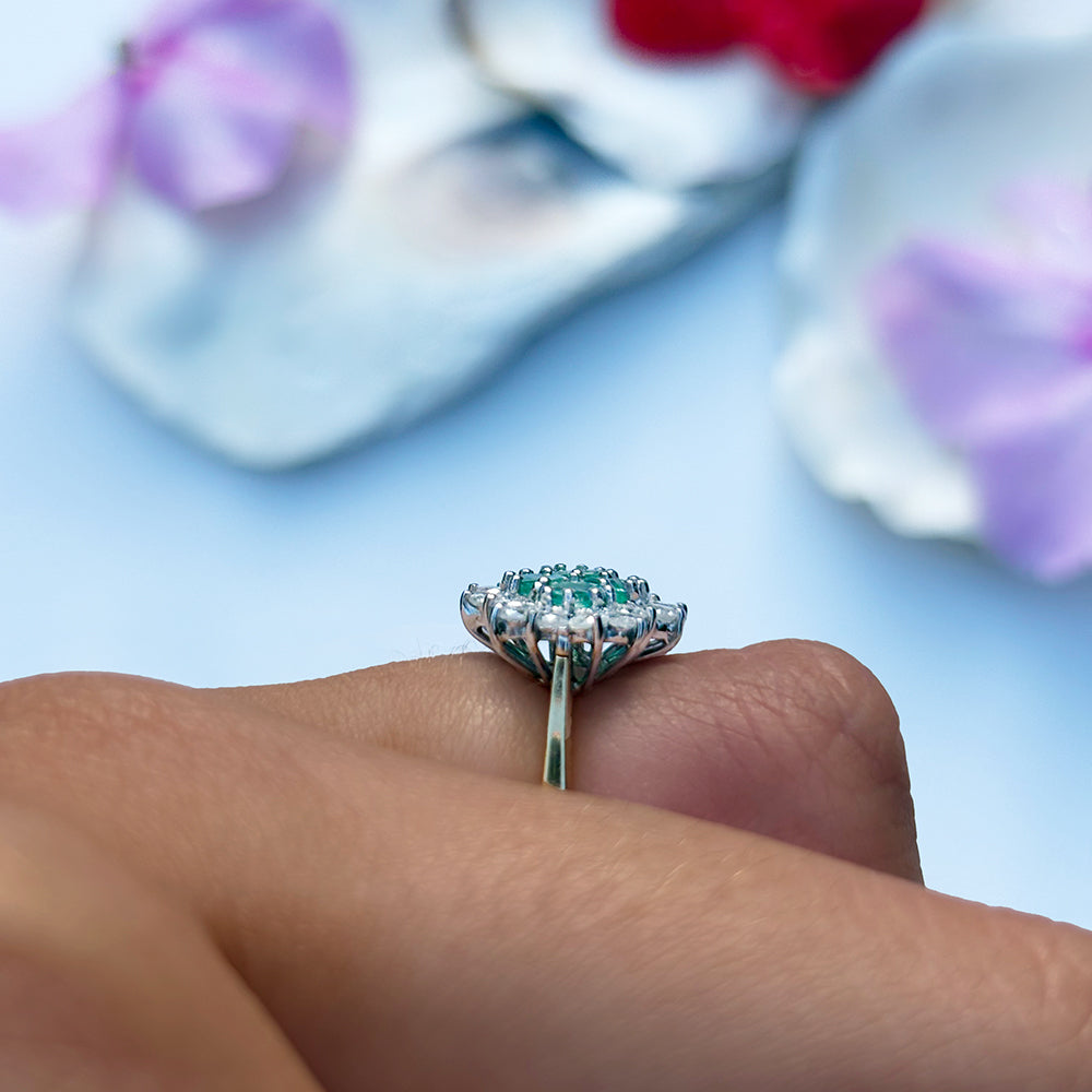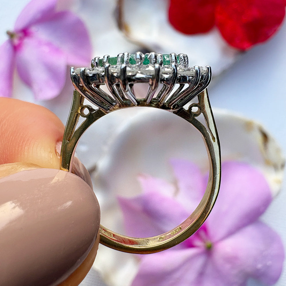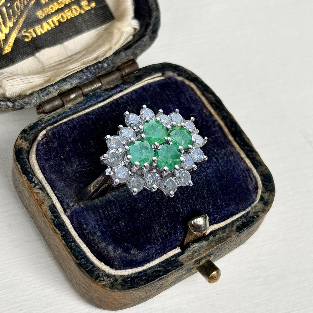 Vintage 1ct Emerald & 0.50ct Diamond Cluster Ring