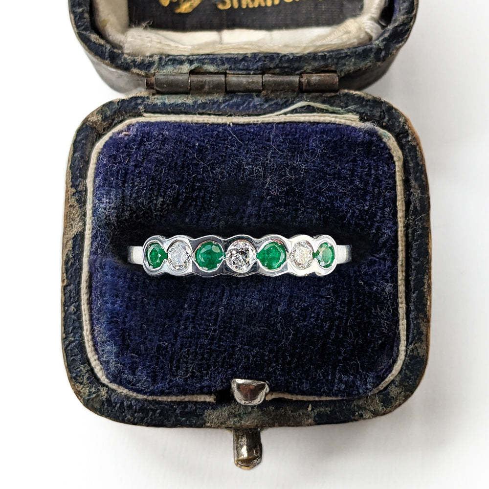 Vintage Emerald & Diamond Half Eternity Band